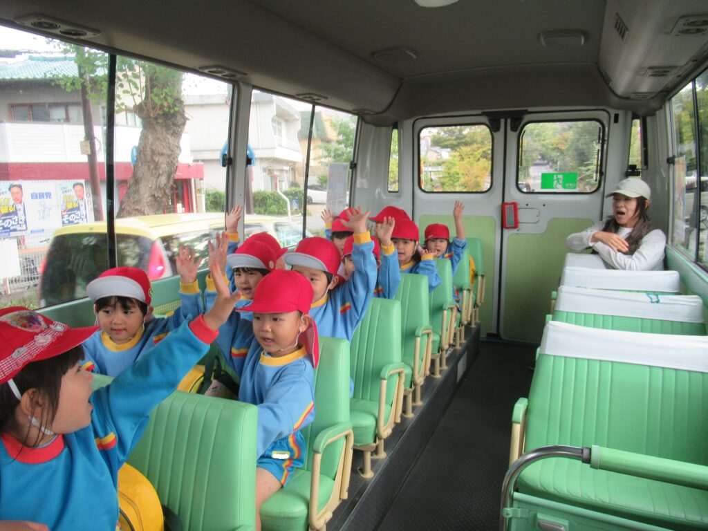 あげてくれました。バスの中では恒例の「ここ行ったことある!」「この道知ってる!」