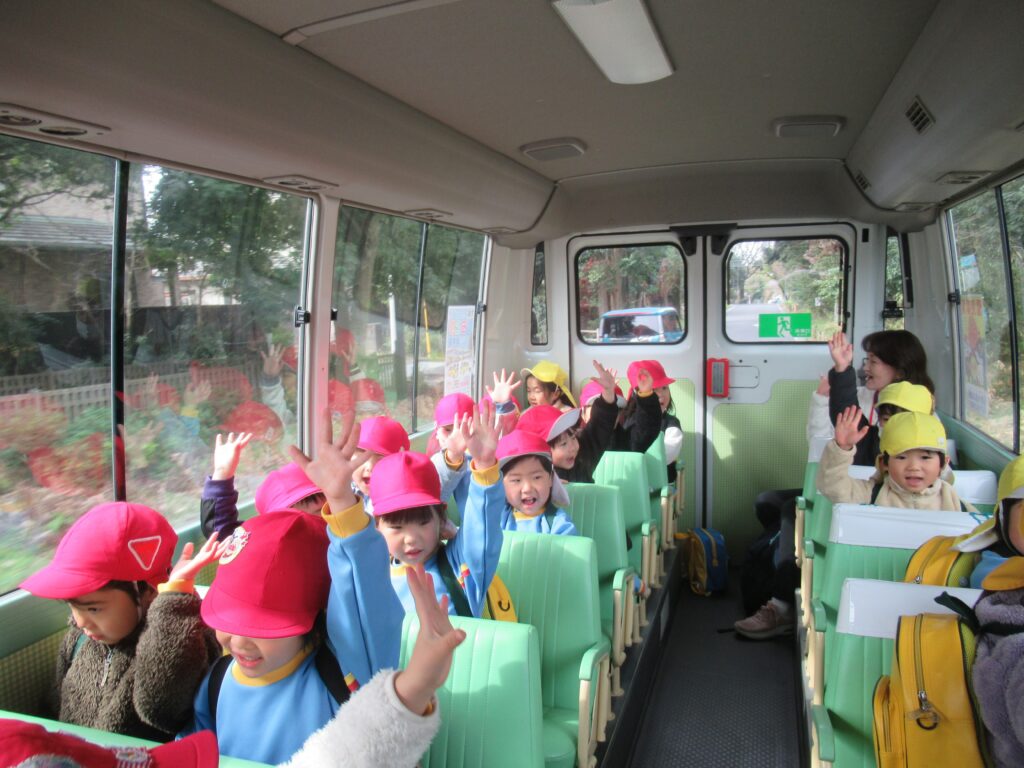 「遠足、楽しみなお友達ー?」「はぁーい」このやりとりも、バスの中では恒例行事です!(^^)!