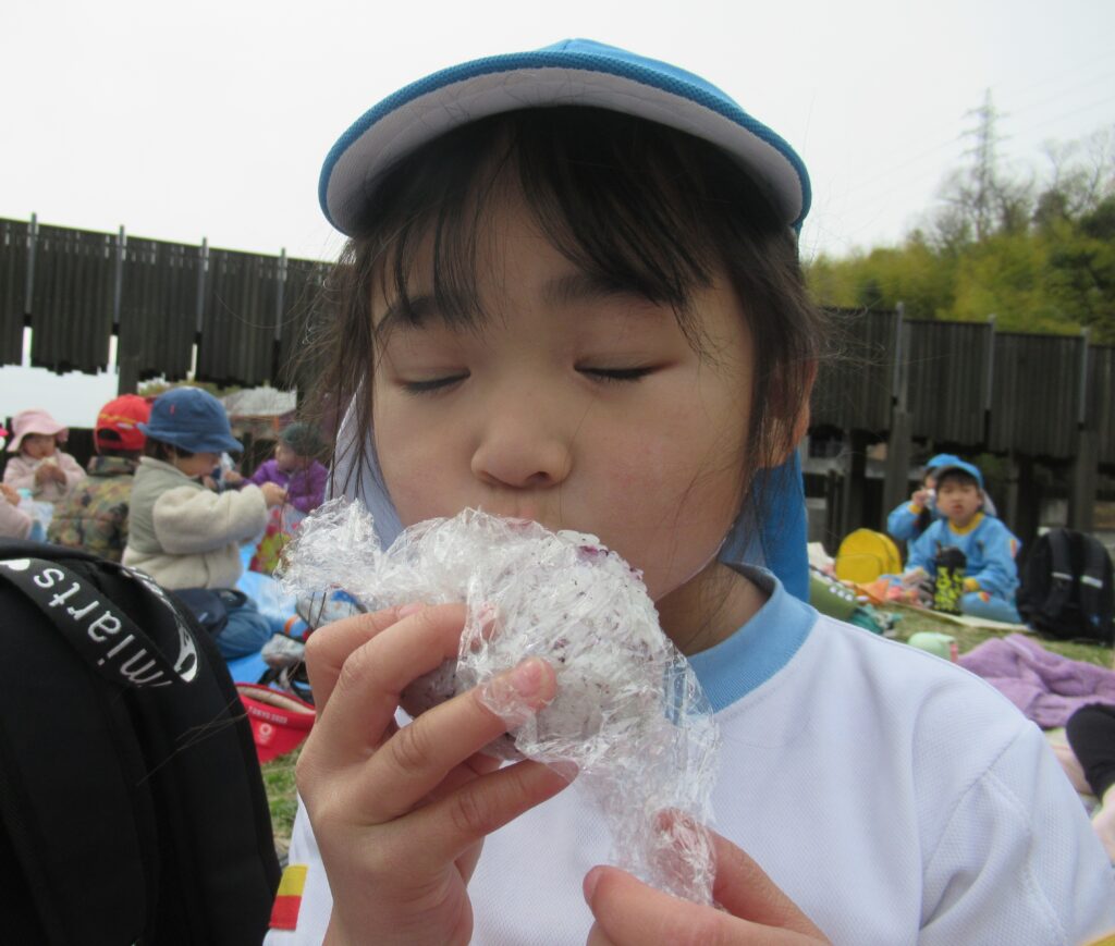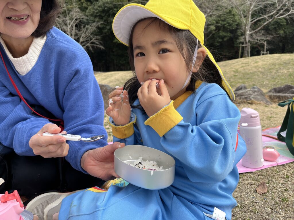 「おにぎりもおいしい~!」「おやつも持ってきた~!!」