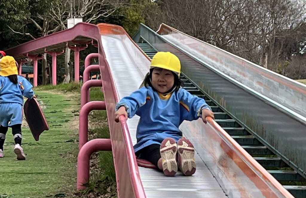 到着して荷物を置いたら、子ども達がいちばん楽しみにしていたすべり台へ出発です。