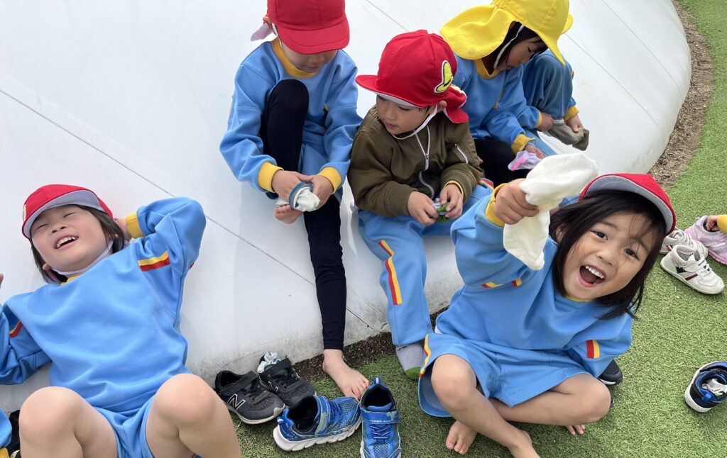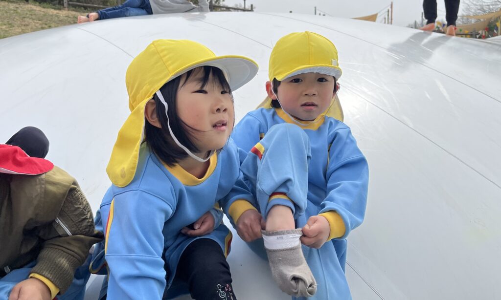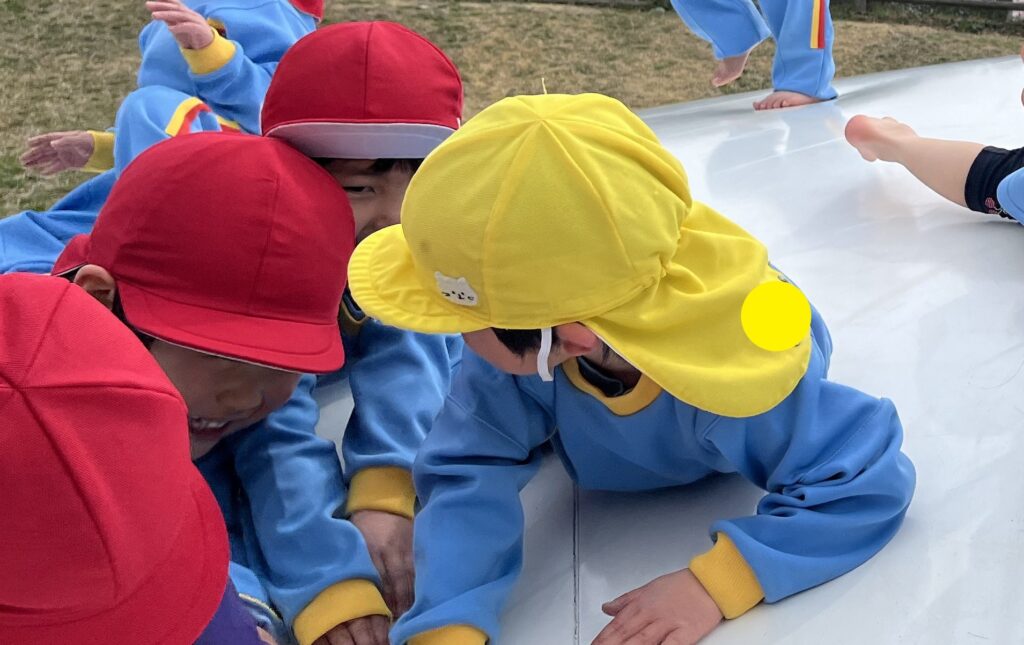 アスレチックでは、どんどん上まで登っていく姿が!余裕の表情で「まきこせんせい、ヤッホー!!」と!「ヤッホー!」と返しながらも、先生はドキドキ👀 もぅ、みんなすっかり大きくなりましたね!