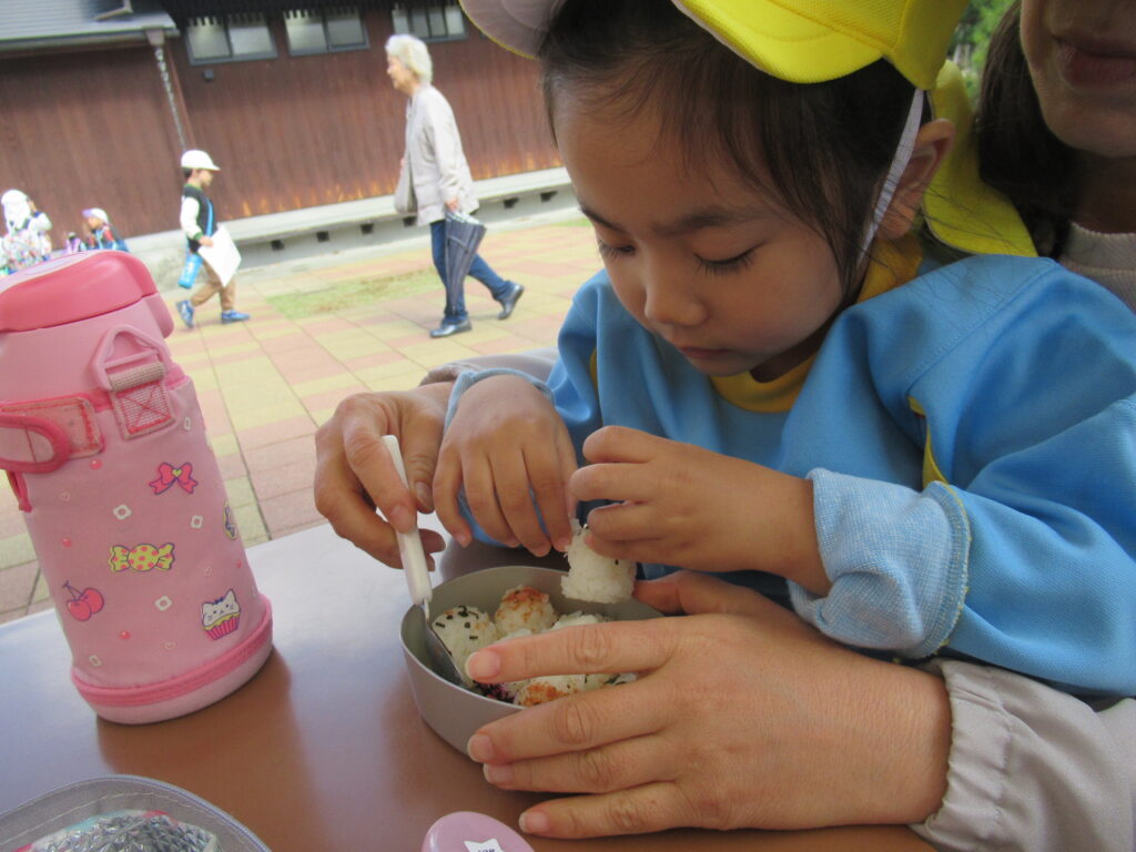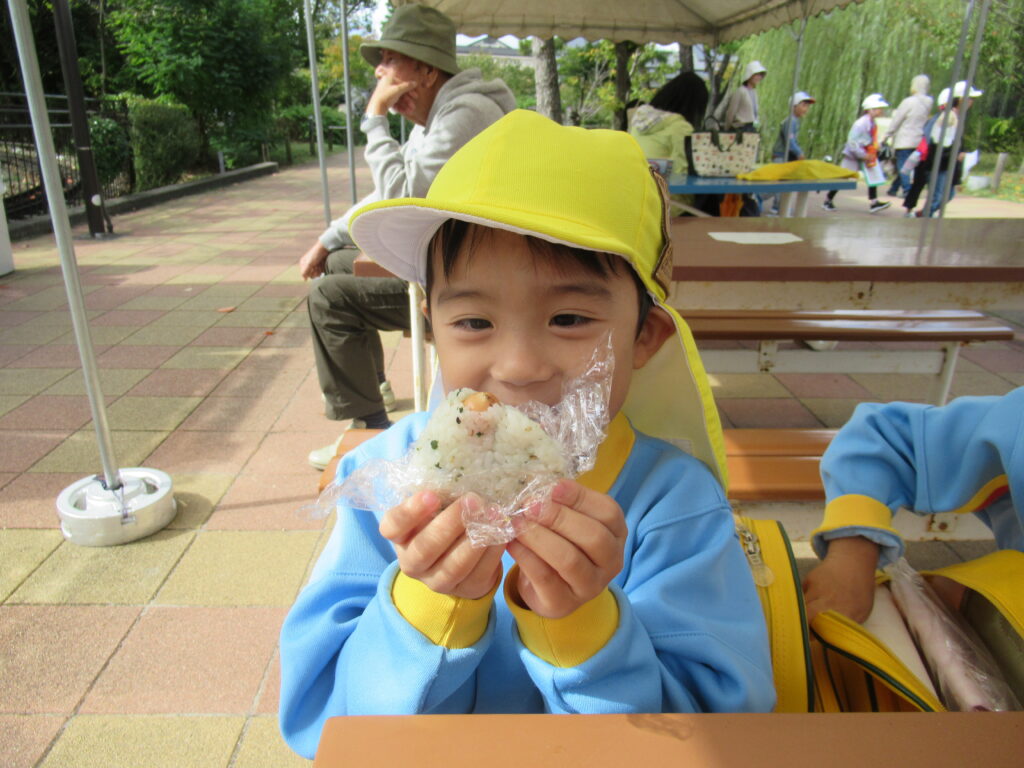 嬉しそうな表情を見せながら、子ども達はおにぎりをたくさん口にほおばり、