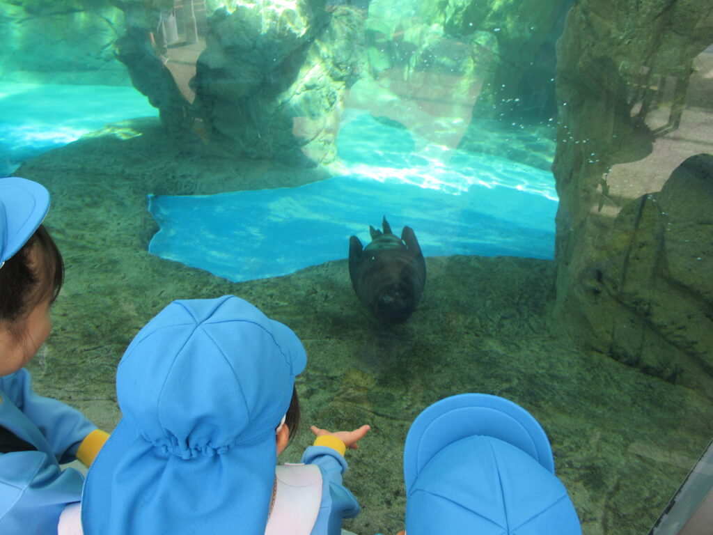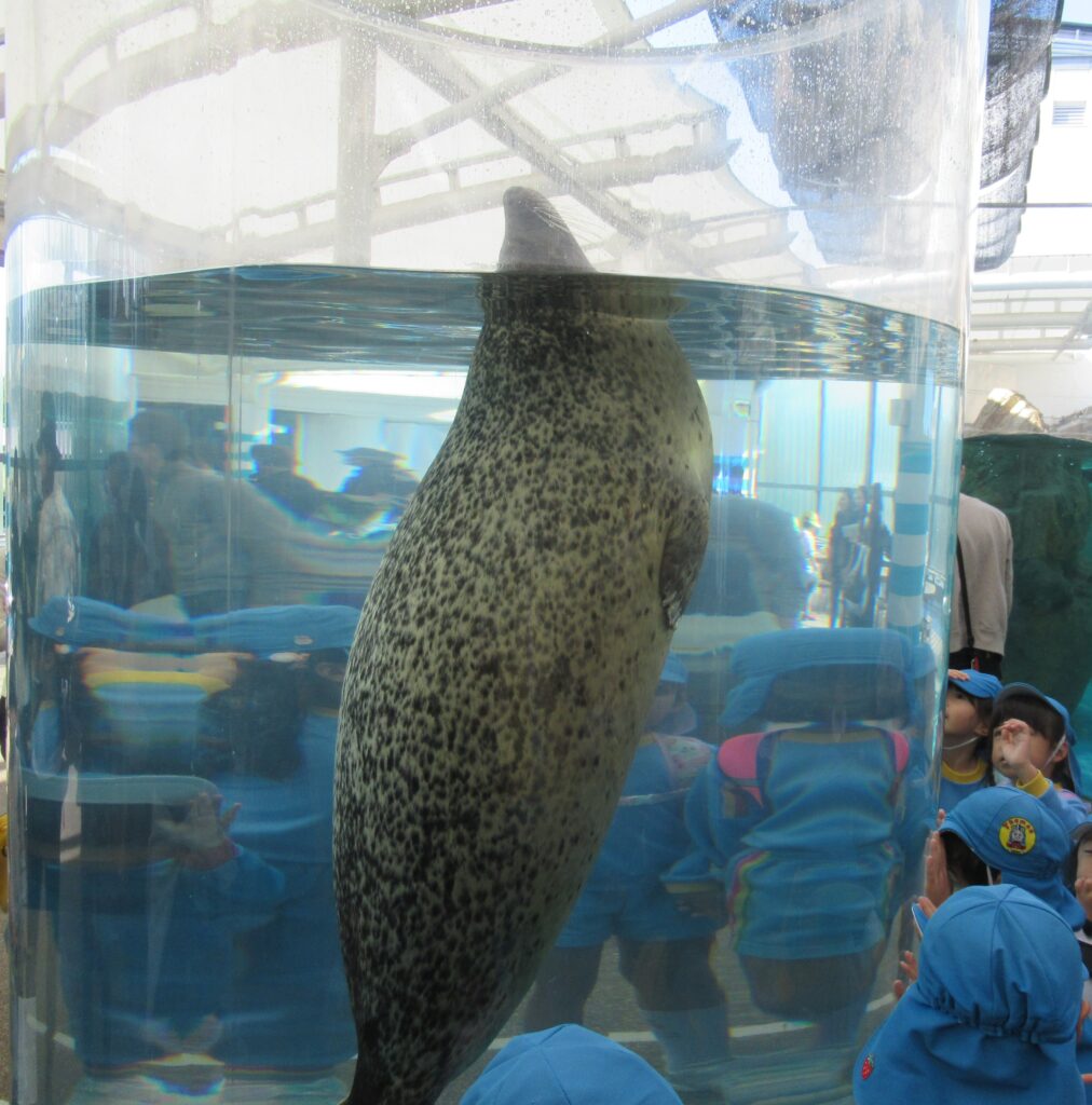たくさんのお客様がおられましたが、混雑を避けながら1階から順番に観察して行きました!オットセイやアザラシが近寄って来た時は、「うわぁ、かわいい!!」「おもしろい顔してる!」と。優雅に泳ぐ姿が可愛らしかったね💕