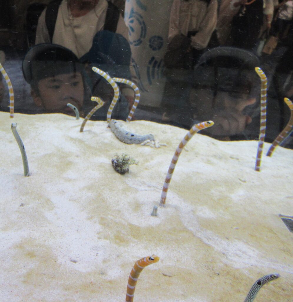 小さな水槽にいる生き物たちにも興味津々で観察していましたよ!「チンアナゴ」が大人気!!🥰