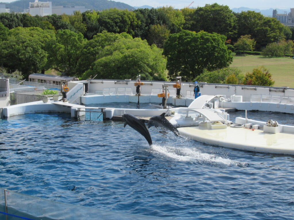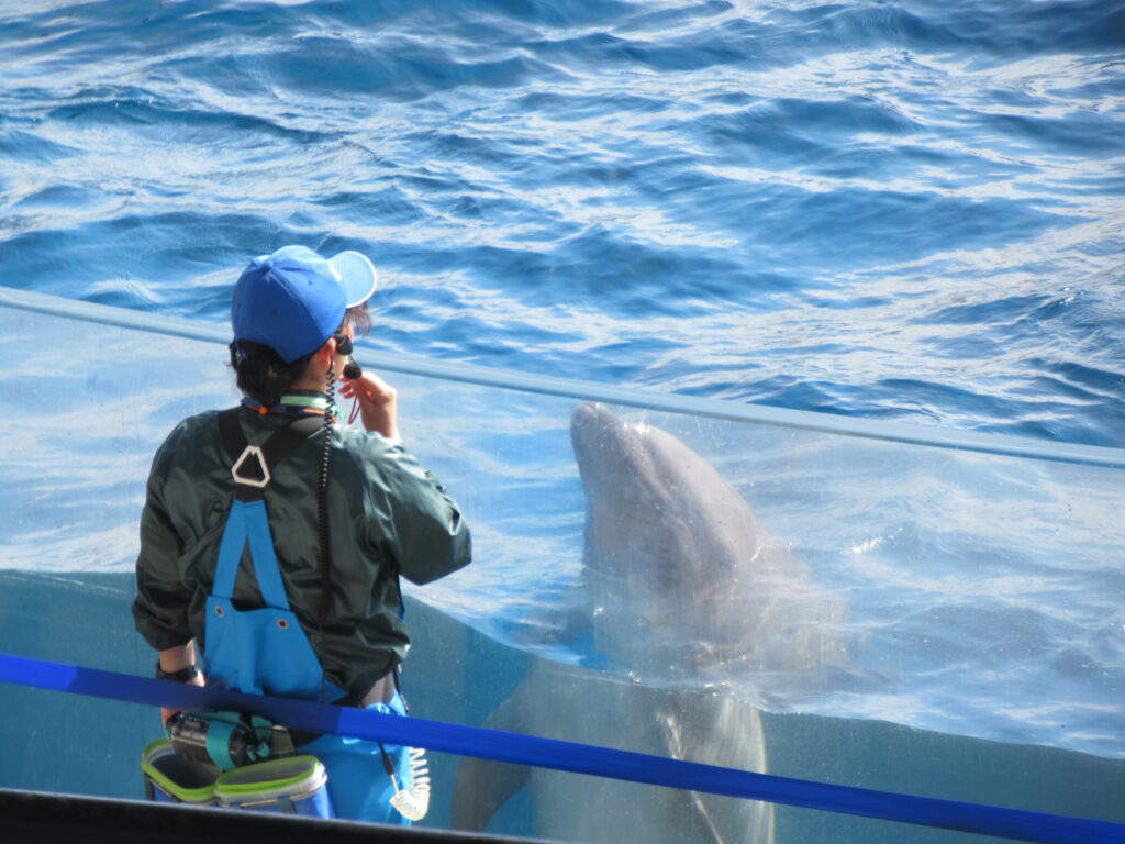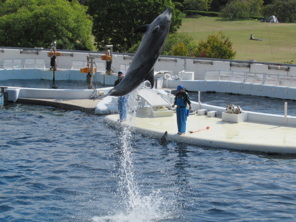 イルカスタジアムの中で、「イルカの学校」の『国語の時間』を見ました。「イルカかわいい~」「すごいジャンプした!!」「泳ぐの速いなぁ!」と大歓声です‼